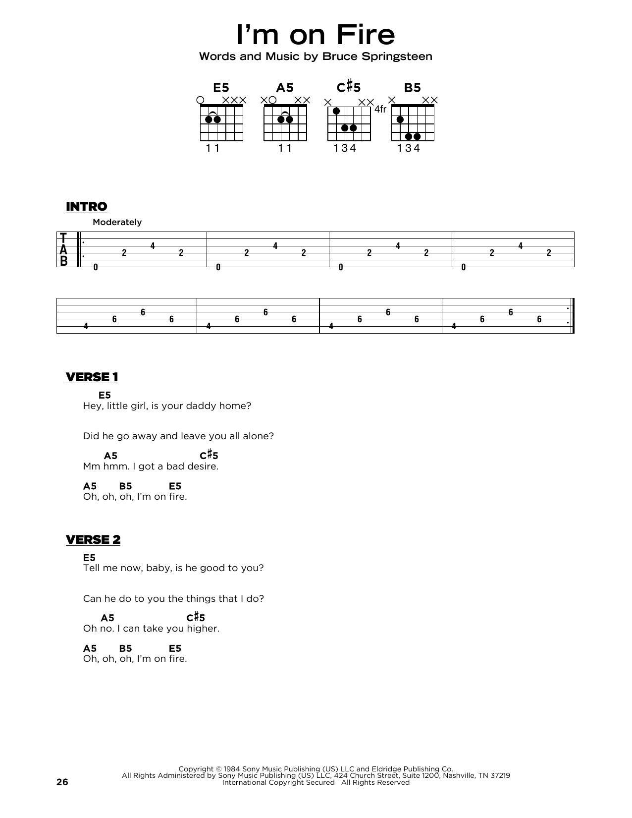 Bruce Springsteen "I'm On Fire" Sheet Music
