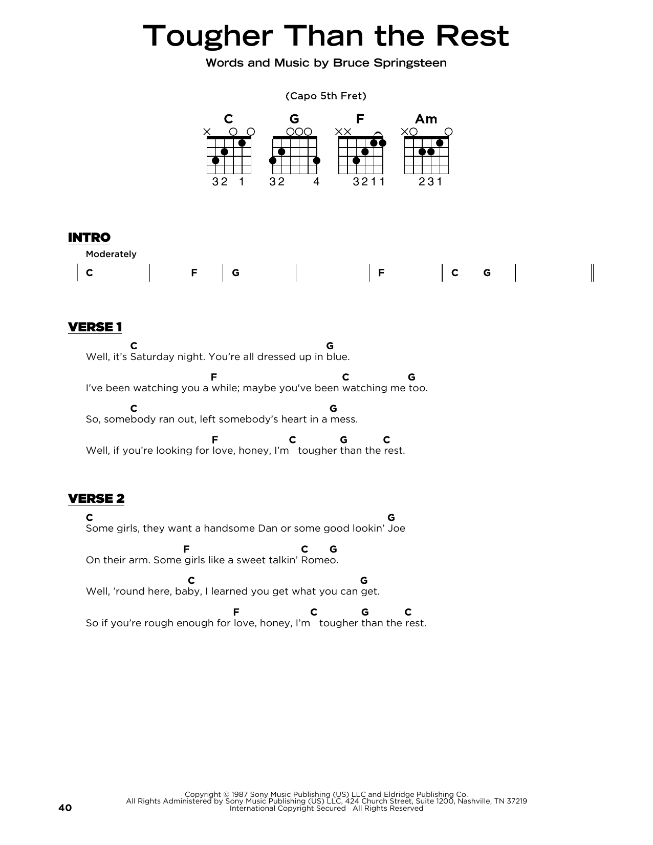 Download 2-Page Bruce Springsteen Tougher Than The Rest sheet music | Printable PDF Digital Notes