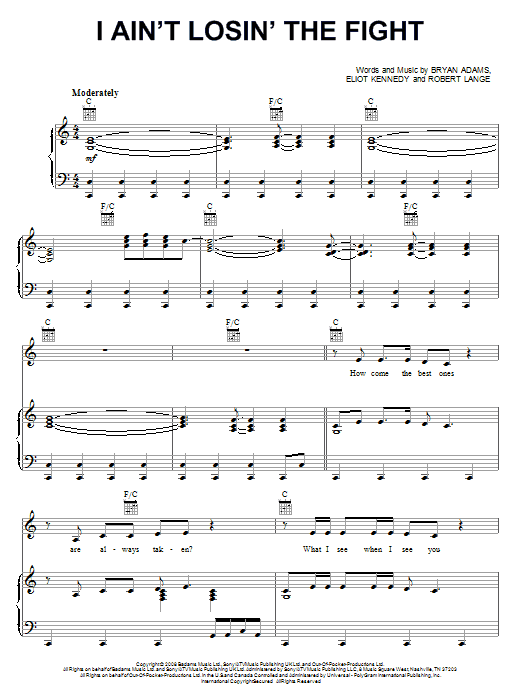 Bryan Adams I Ain't Losin' The Fight sheet music, chords, lyrics - Printable PDF for Piano, Vocal & Guitar (Right-Hand Melody)