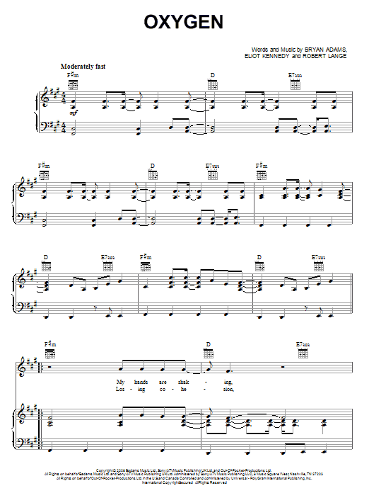 Bryan Adams Oxygen sheet music, chords, lyrics - Printable PDF for Piano, Vocal & Guitar (Right-Hand Melody)