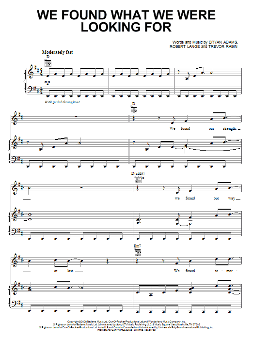 Bryan Adams "We Found What We Were Looking For" Sheet Music