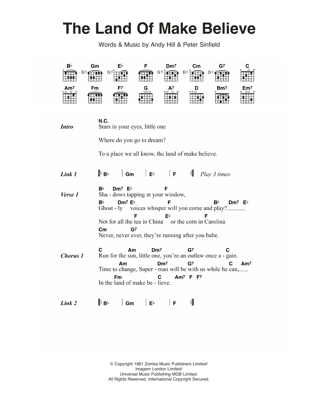 Bucks Fizz The Land Of Make Believe sheet music, chords, lyrics - Printable PDF for Lyrics & Chords