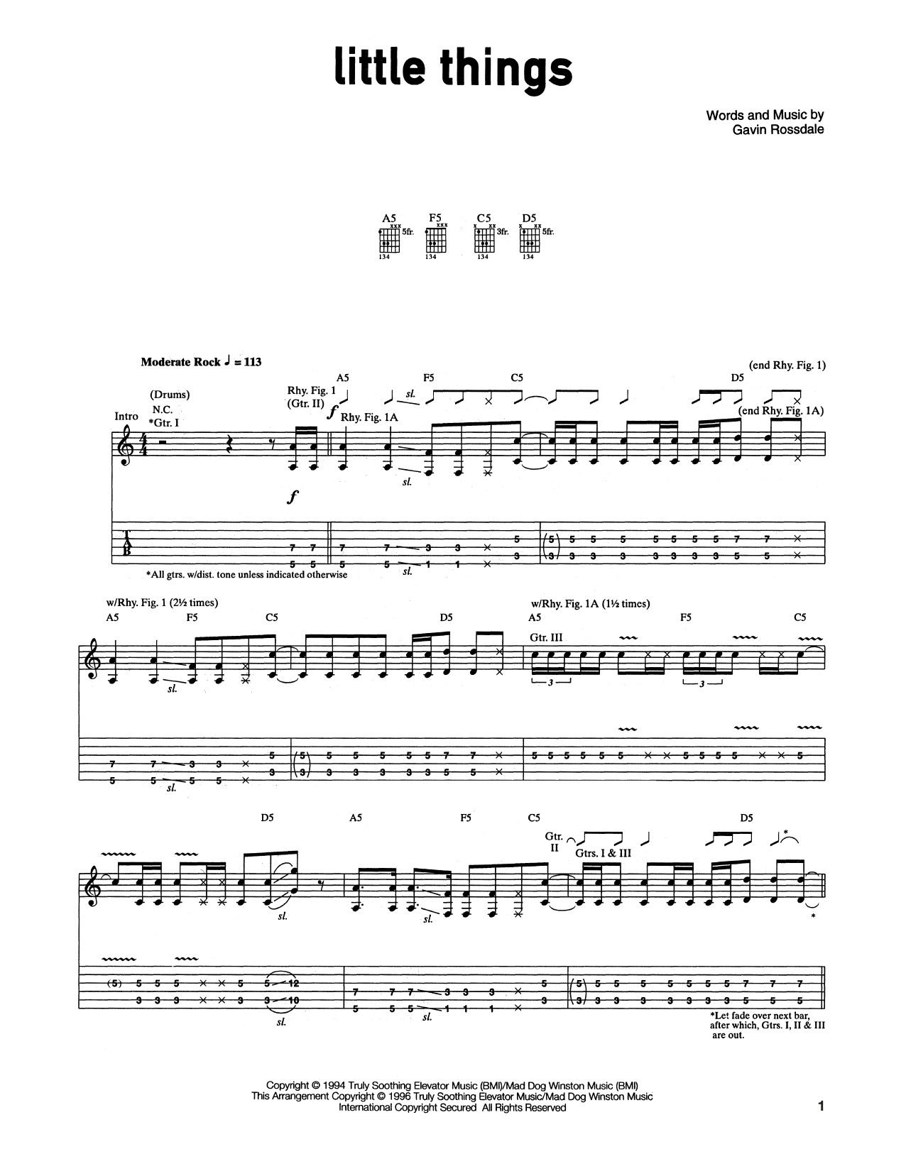 Bush Little Things sheet music, chords, lyrics - Printable PDF for Guitar Tab
