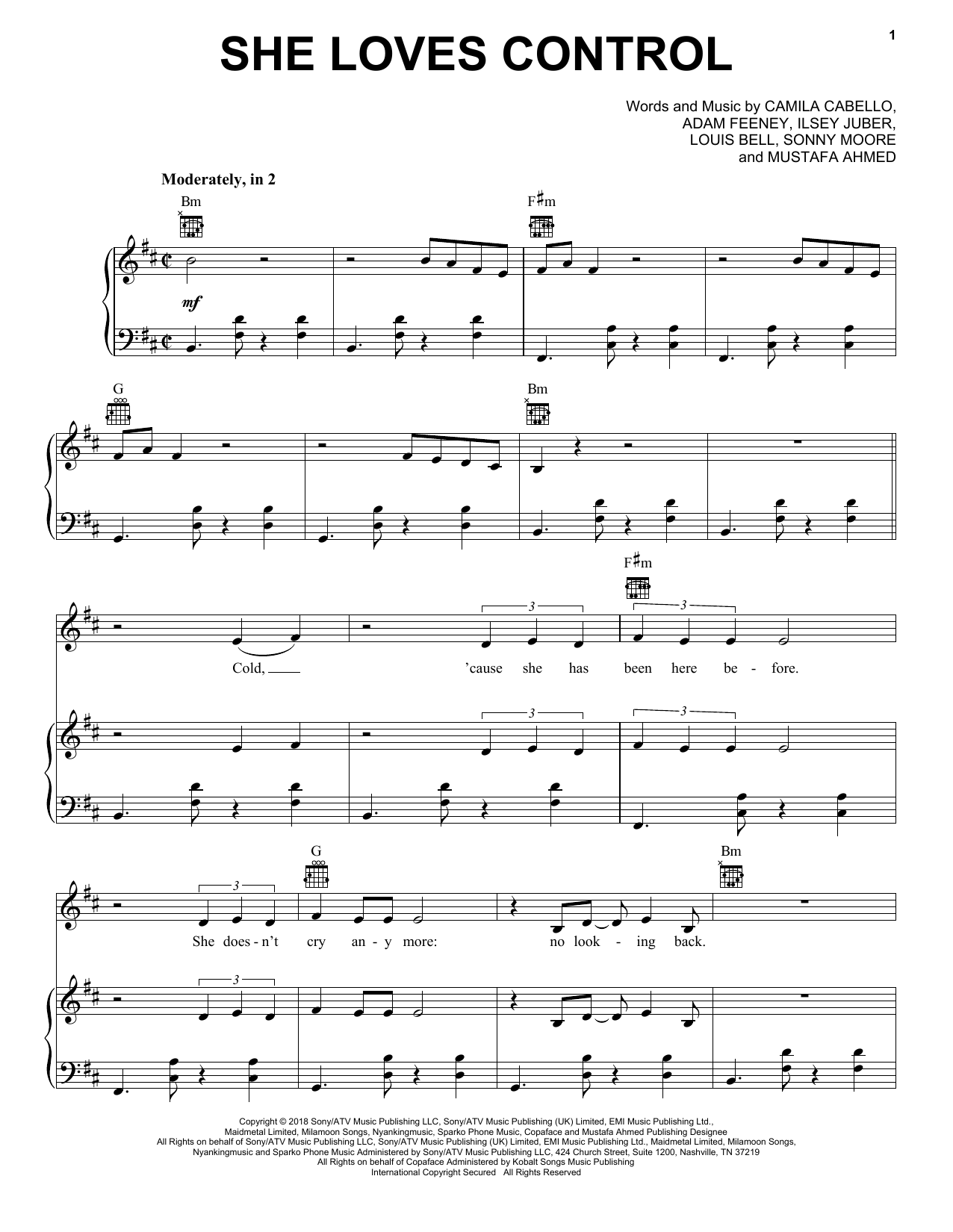 Camila Cabello She Loves Control sheet music, chords, lyrics - Printable PDF for Piano, Vocal & Guitar (Right-Hand Melody)