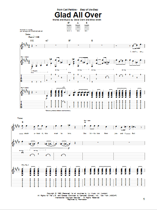 Carl Perkins Glad All Over sheet music, chords, lyrics - Printable PDF for Guitar Tab