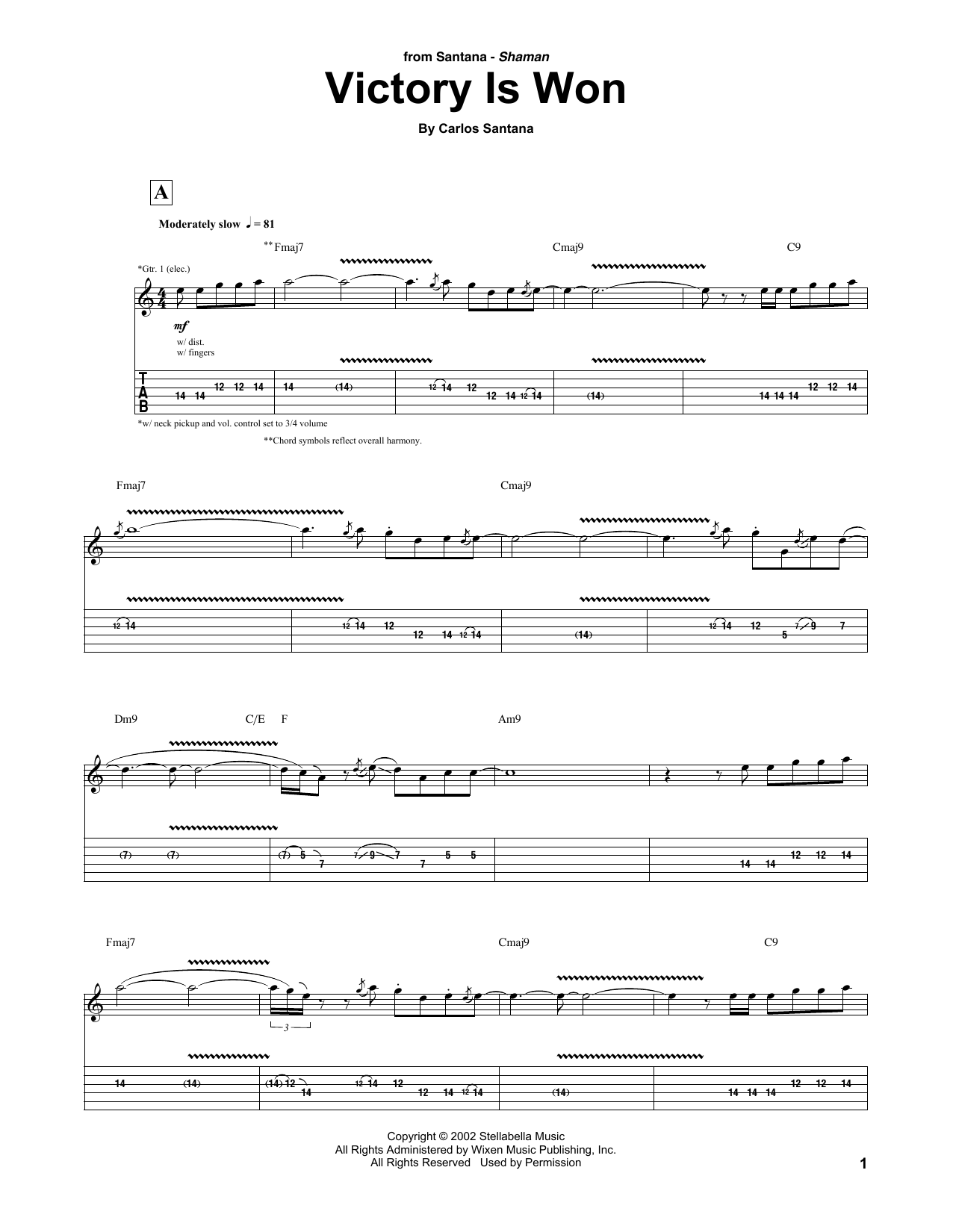 Download 5-Page Carlos Santana Victory Is Won sheet music | Printable PDF Digital Notes