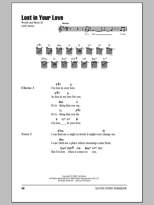 Carly Simon Lost In Your Love sheet music, chords, lyrics - Printable PDF for Lyrics & Chords