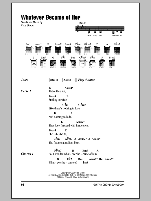 Carly Simon Whatever Became Of Her sheet music, chords, lyrics - Printable PDF for Lyrics & Chords