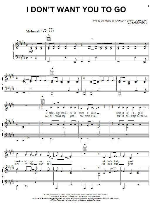 I Don't Want You To Go Sheet Music Sample