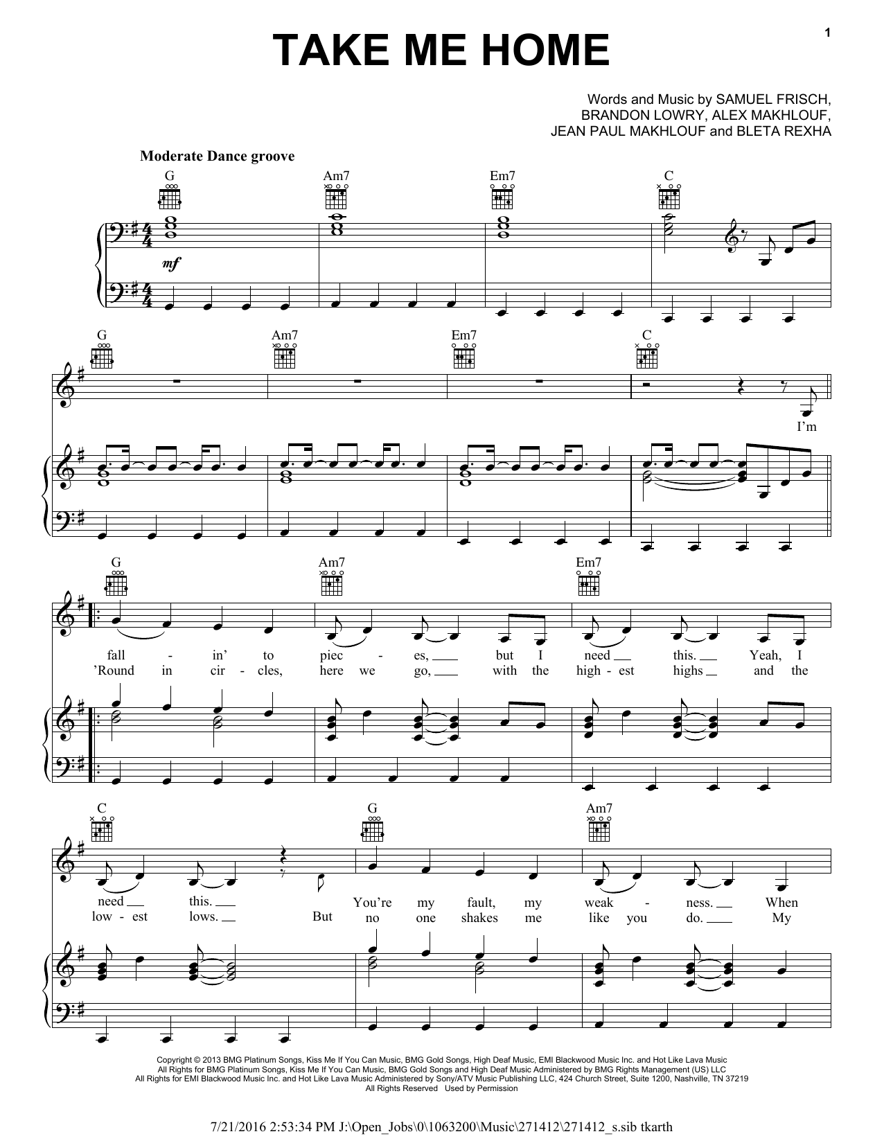Take Me Home (feat. Bebe Rexha) Sheet Music Sample