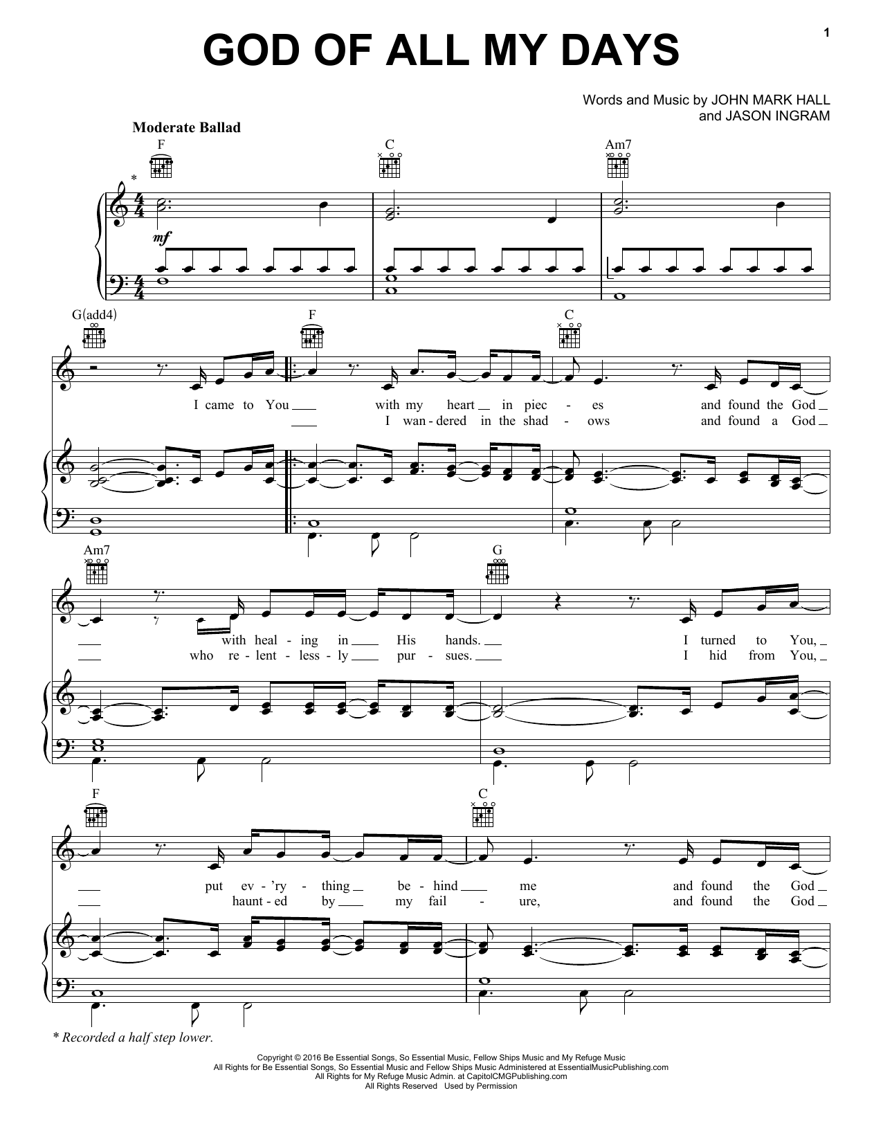Casting Crowns God Of All My Days sheet music, chords, lyrics - Printable PDF for Piano, Vocal & Guitar (Right-Hand Melody)