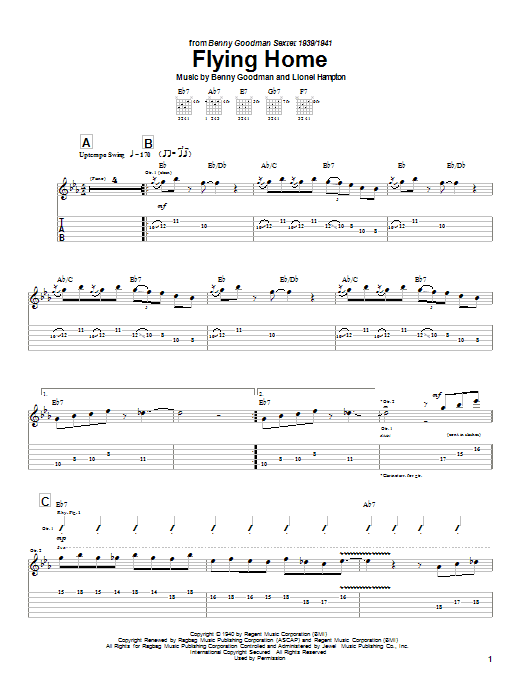 Charlie Christian Flying Home sheet music, chords, lyrics - Printable PDF for Guitar Tab