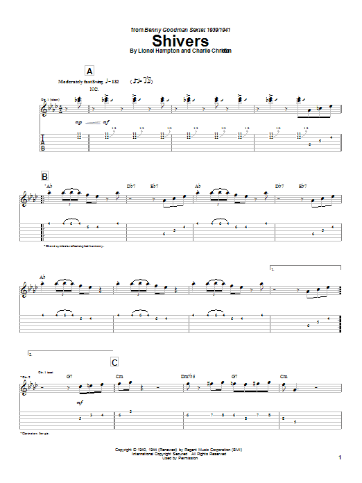 Charlie Christian Shivers sheet music, chords, lyrics - Printable PDF for Guitar Tab