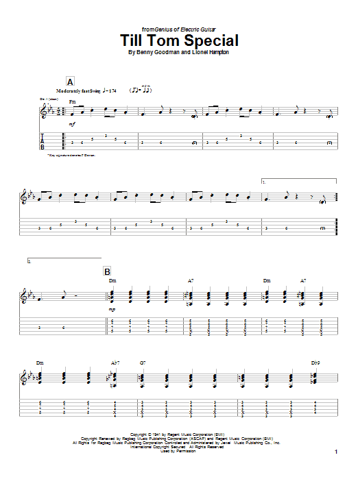 Charlie Christian Till Tom Special sheet music, chords, lyrics - Printable PDF for Guitar Tab