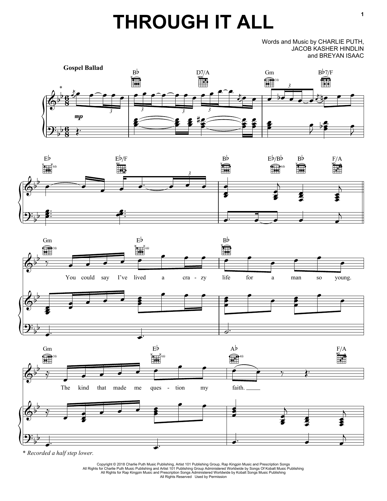 Charlie Puth Through It All sheet music, chords, lyrics - Printable PDF for Piano, Vocal & Guitar (Right-Hand Melody)