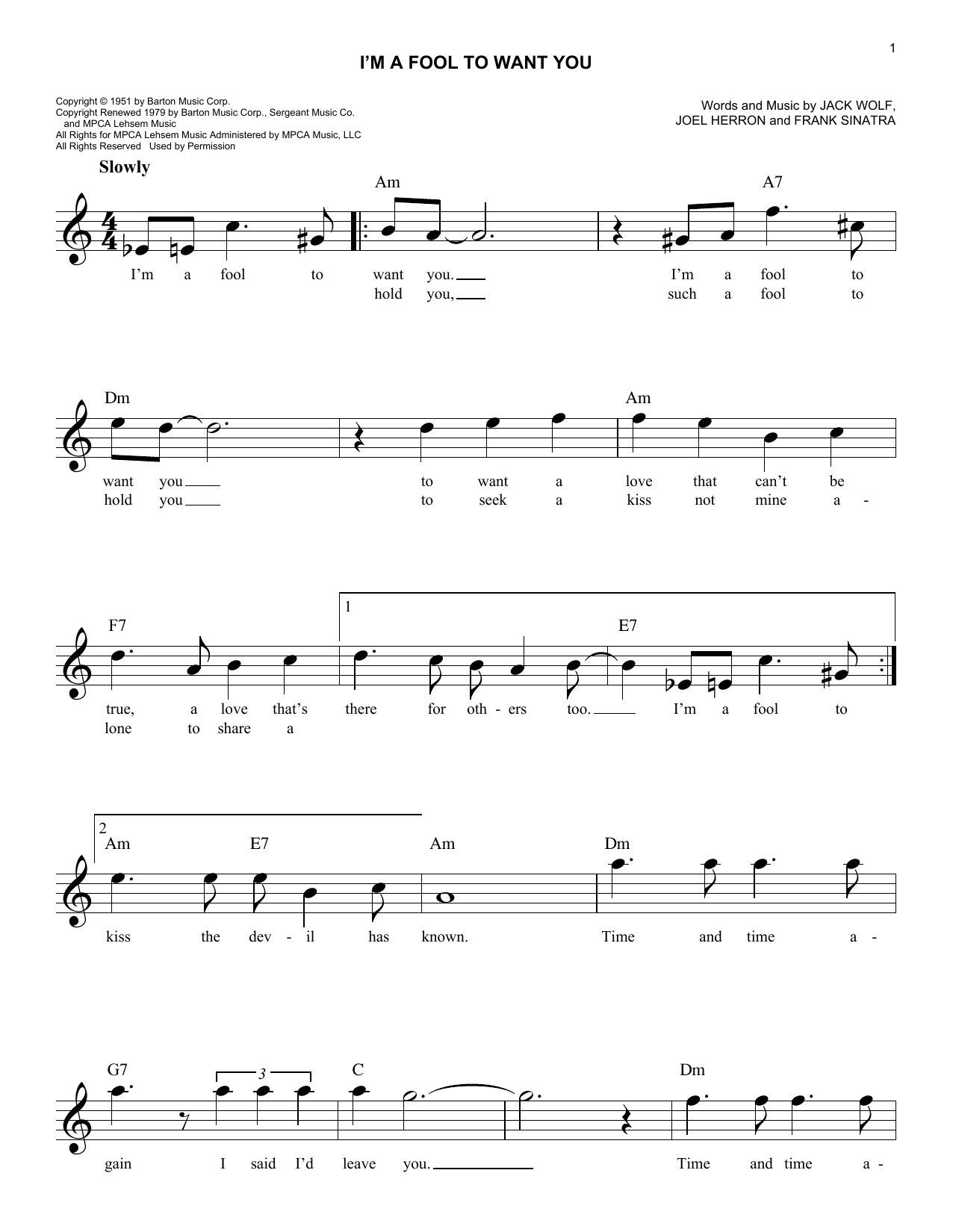 So, go ahead and download I'm A Fool To Want You sheet music and start playing this wonderful score in bare minutes.