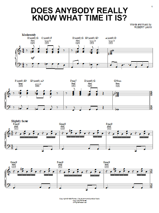 Chicago Does Anybody Really Know What Time It Is? sheet music, chords, lyrics - Printable PDF for Piano, Vocal & Guitar (Right-Hand Melody)