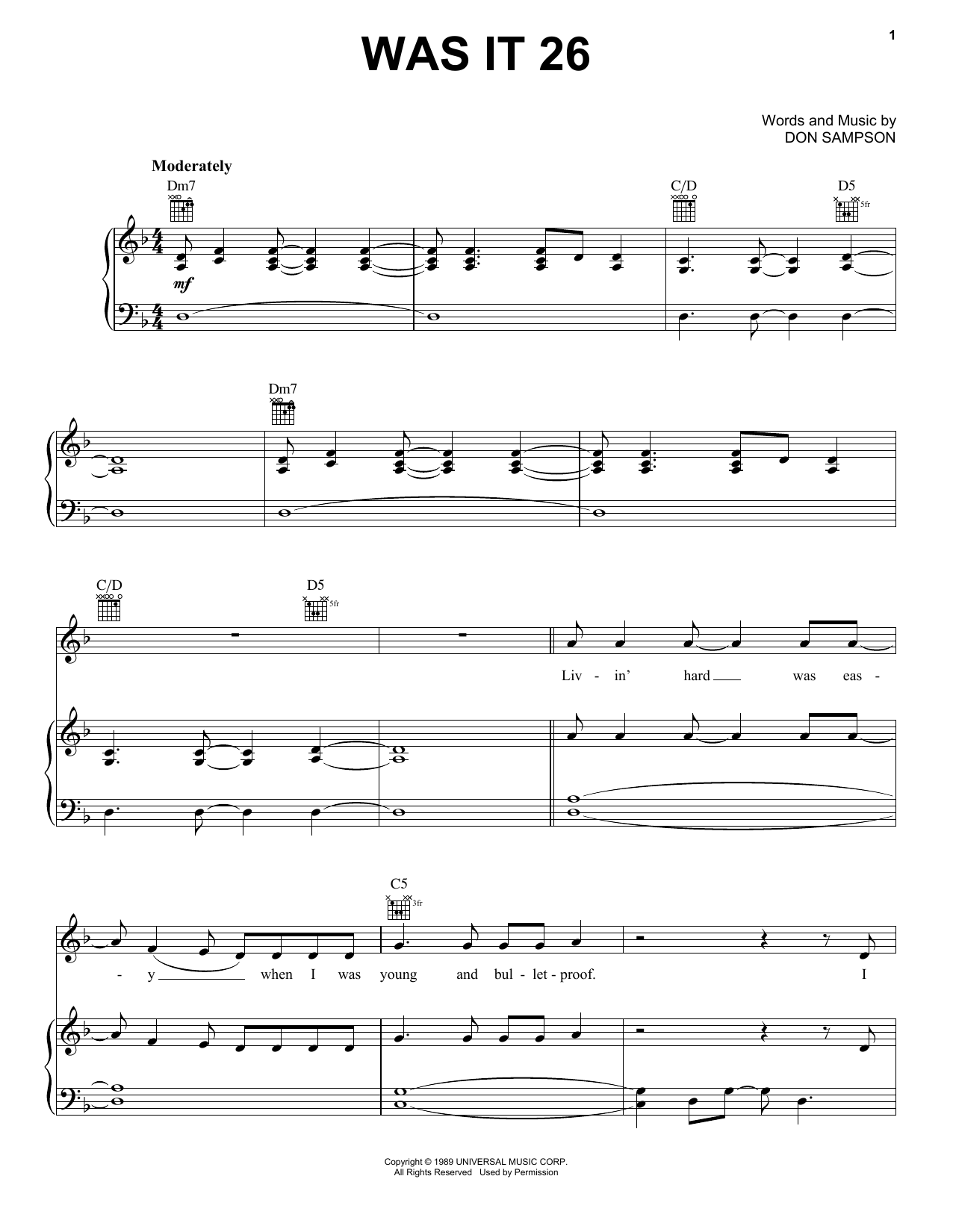 Was It 26 Sheet Music Sample