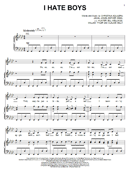 Christina Aguilera I Hate Boys sheet music, chords, lyrics - Printable PDF for Piano, Vocal & Guitar (Right-Hand Melody)
