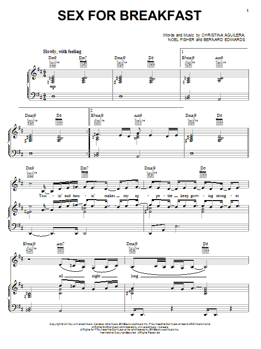 Christina Aguilera Sex For Breakfast sheet music, chords, lyrics - Printable PDF for Piano, Vocal & Guitar (Right-Hand Melody)