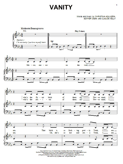 Christina Aguilera Vanity sheet music, chords, lyrics - Printable PDF for Piano, Vocal & Guitar (Right-Hand Melody)