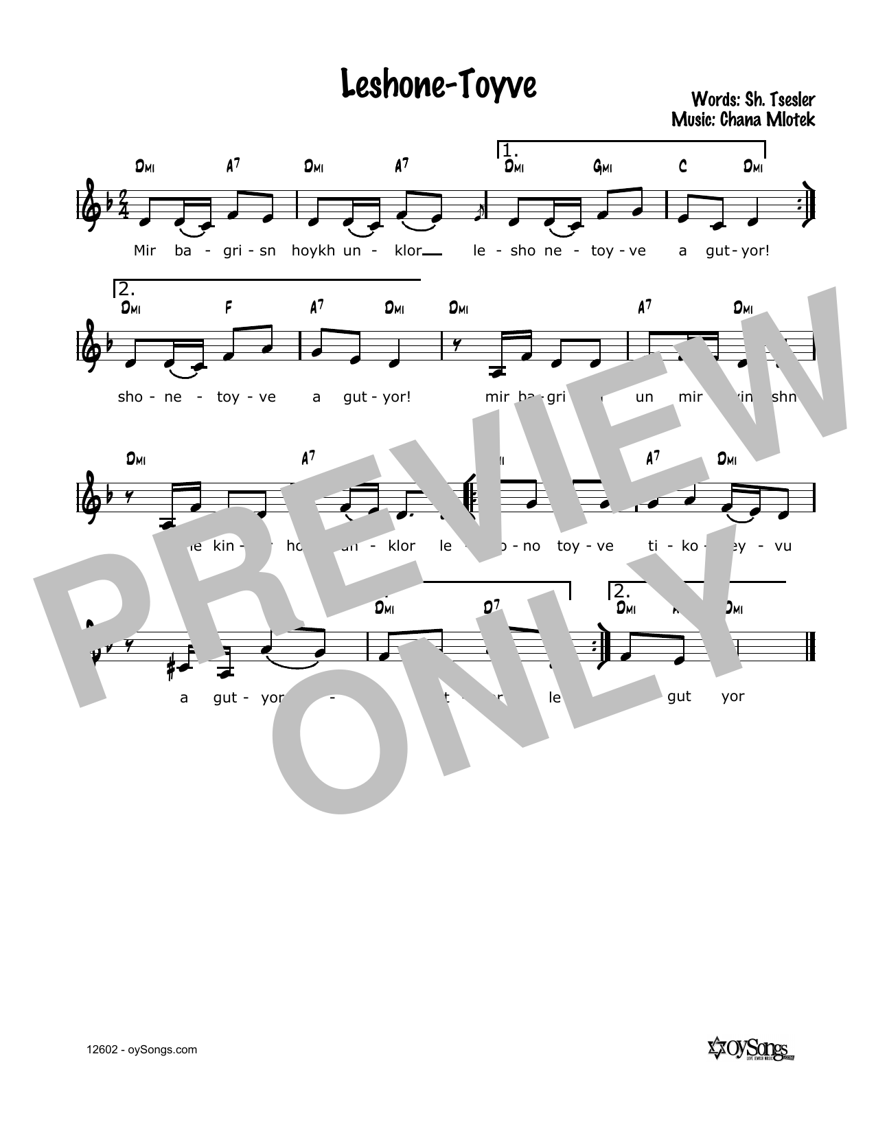 * Click playback or notes icon (wheel cog) at the bottom of the interactive music notes viewer and check "Leshono-Toyvo" playback & transpose functionality prior to purchase.