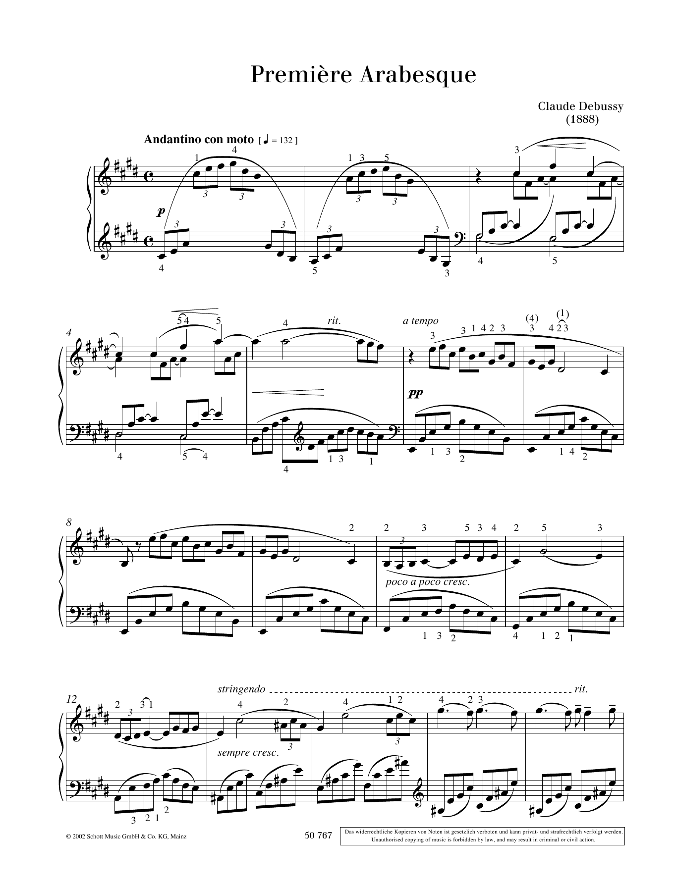 Claude Debussy Première Arabesques sheet music, chords, lyrics - Printable PDF for Piano Solo