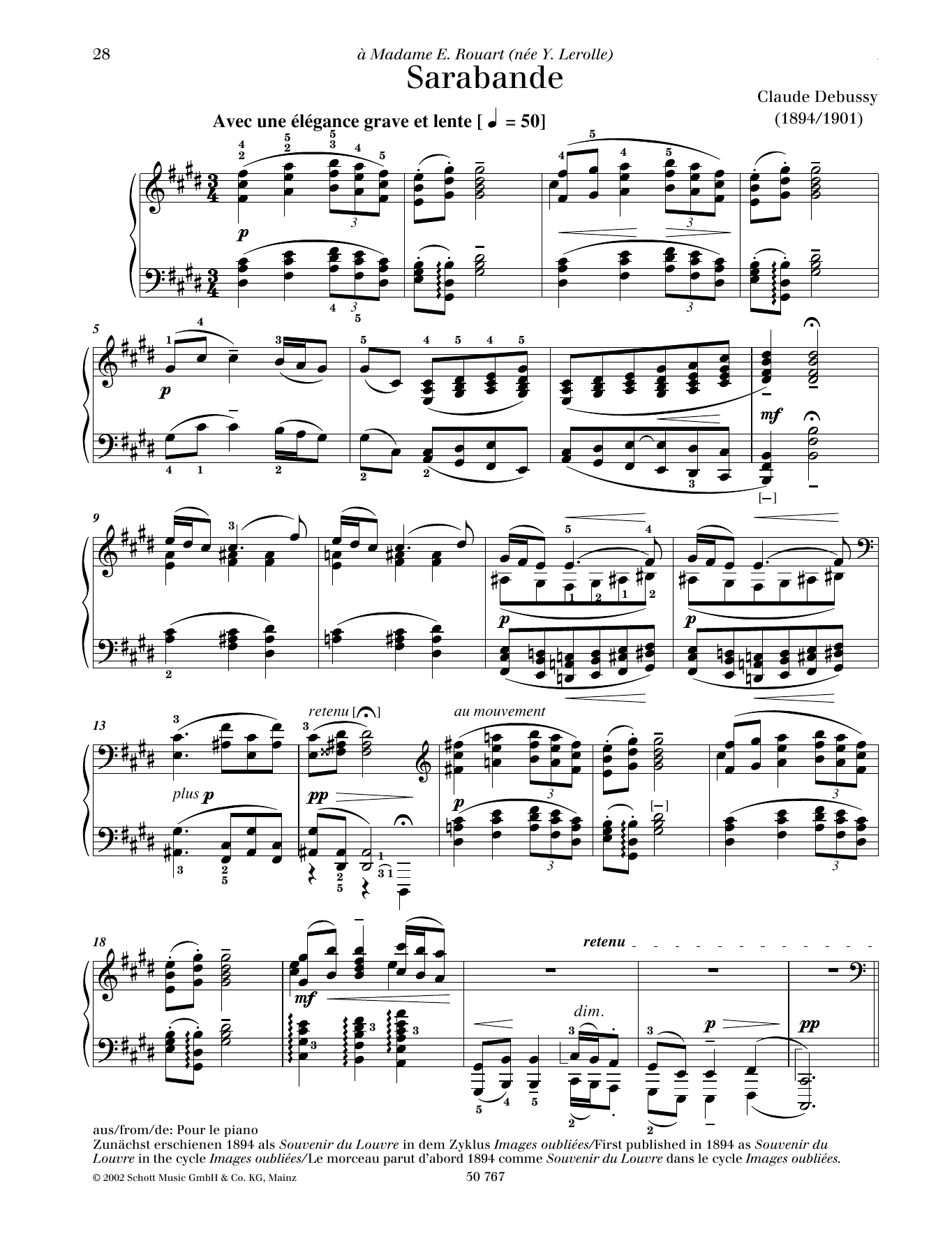 Claude Debussy "Sarabande" Sheet Music