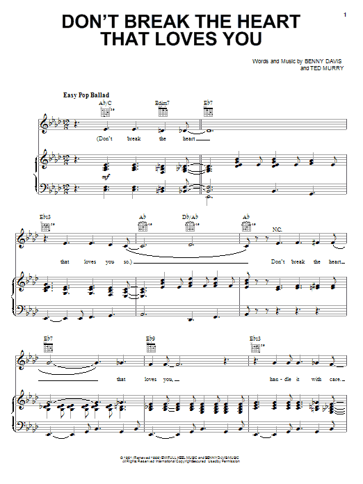 So, go ahead and download Don't Break The Heart That Loves You sheet music and start playing this wonderful score in bare minutes.