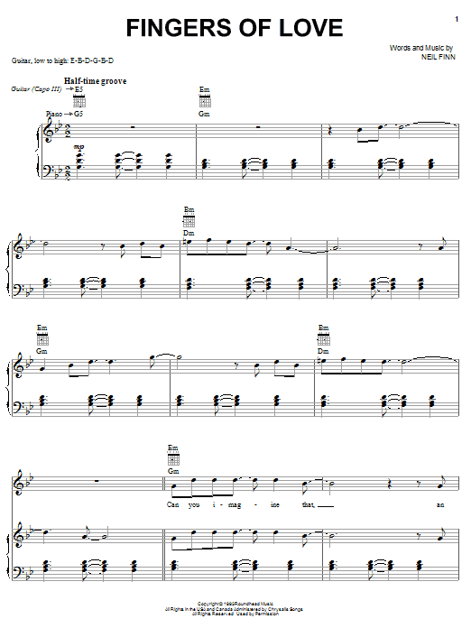Crowded House Fingers Of Love sheet music, chords, lyrics - Printable PDF for Piano, Vocal & Guitar (Right-Hand Melody)