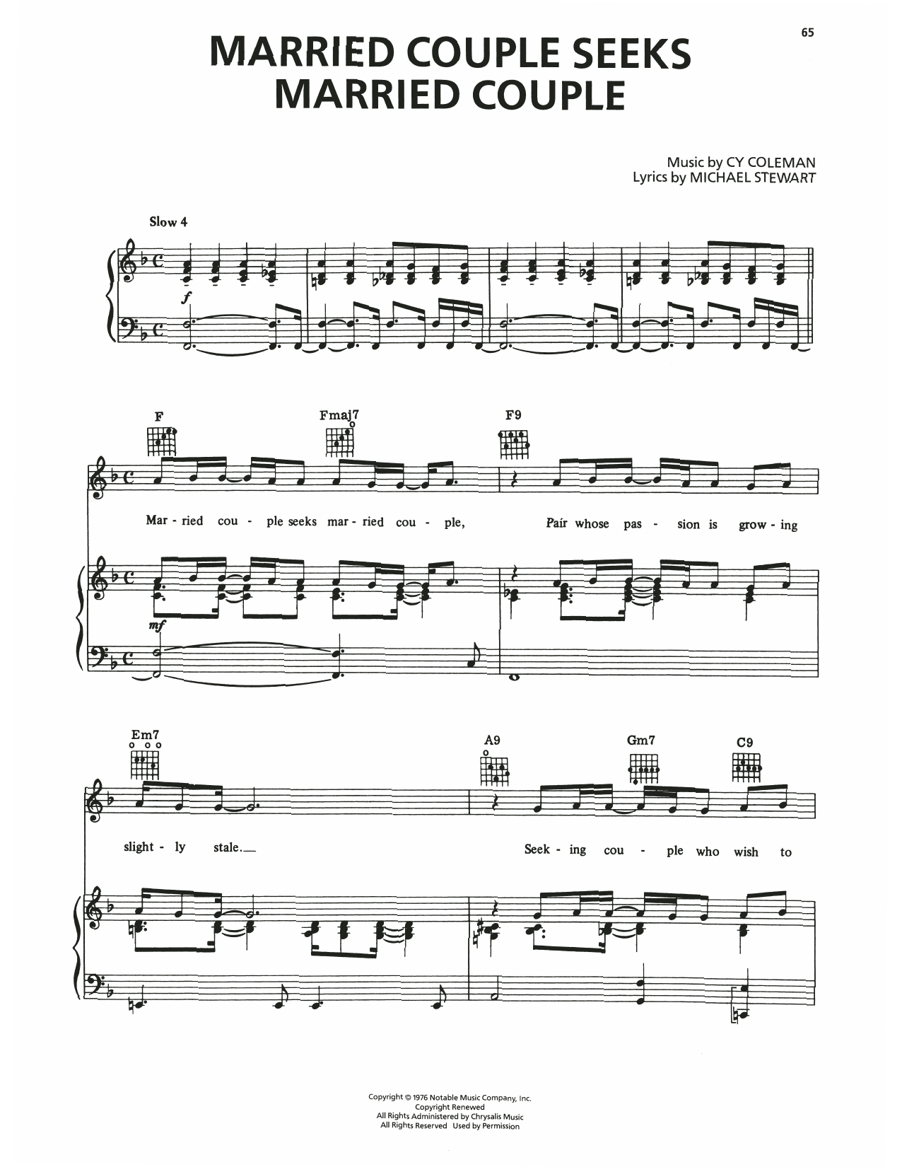 Cy Coleman Married Couple Seeks Married Couple (from I Love My Wife) sheet music, chords, lyrics - Printable PDF for Piano, Vocal & Guitar Chords (Right-Hand Melody)