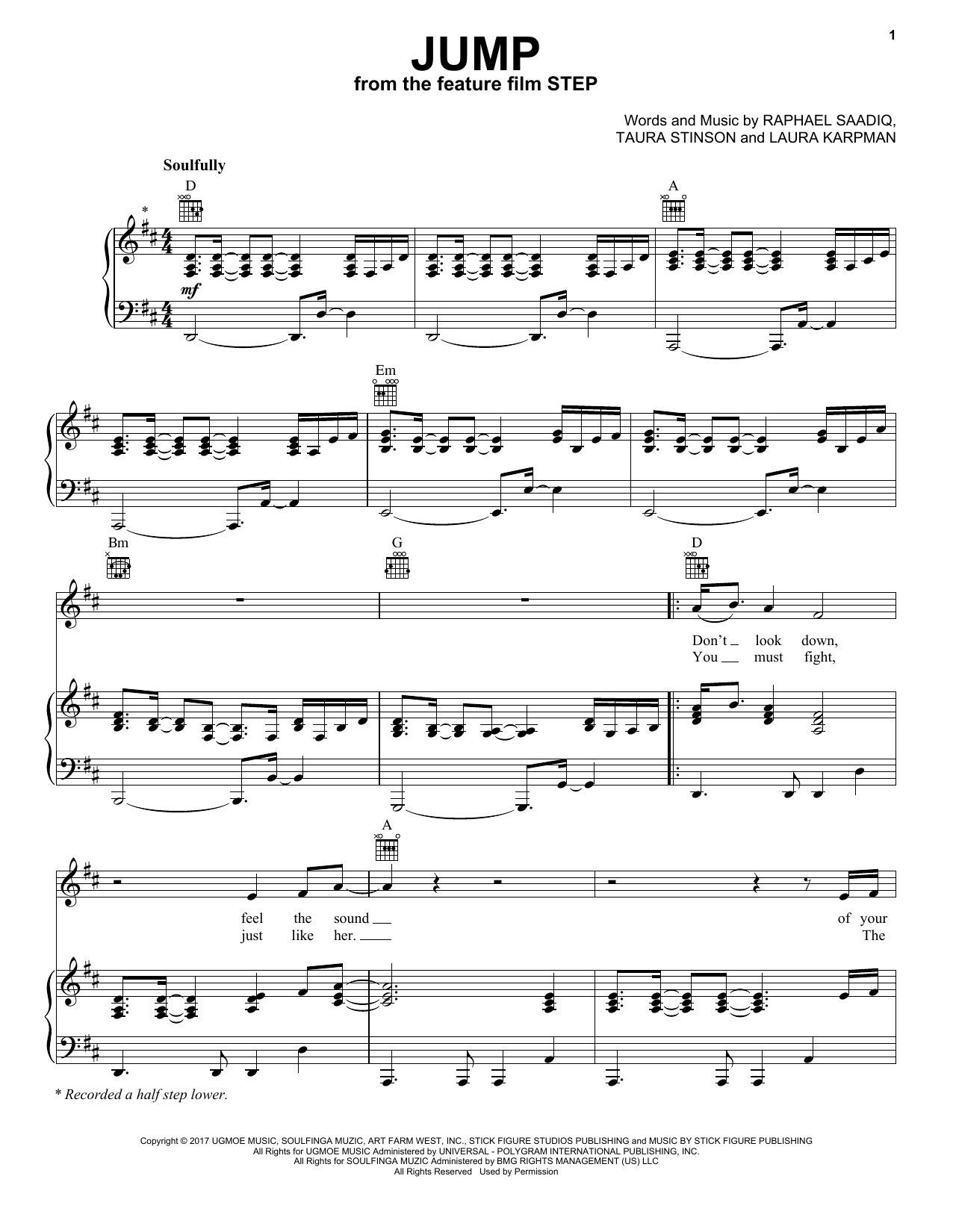 Cynthia Erivo Jump sheet music, chords, lyrics - Printable PDF for Piano, Vocal & Guitar (Right-Hand Melody)