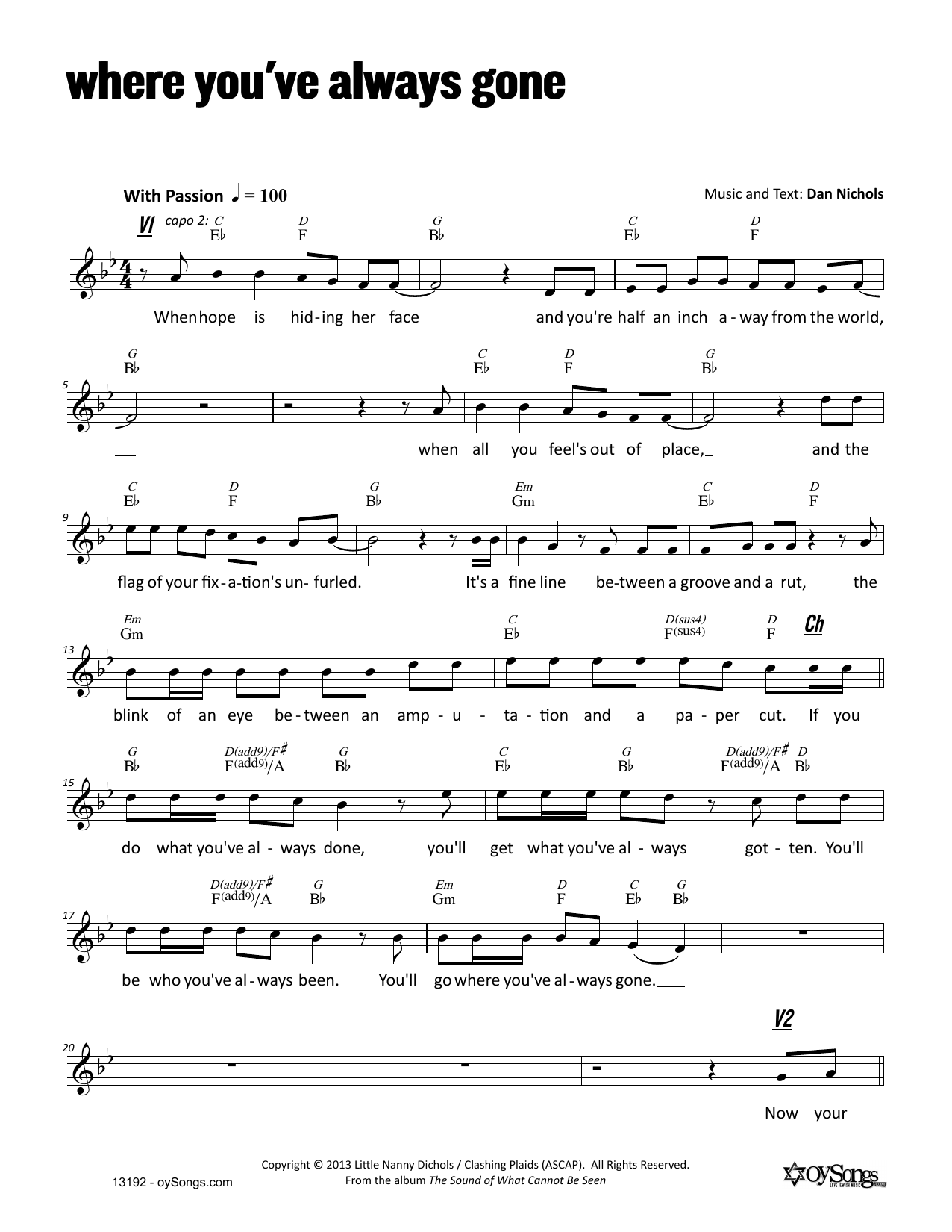 Dan Nichols Where You've Always Gone sheet music, chords, lyrics - Printable PDF for Melody Line, Lyrics & Chords