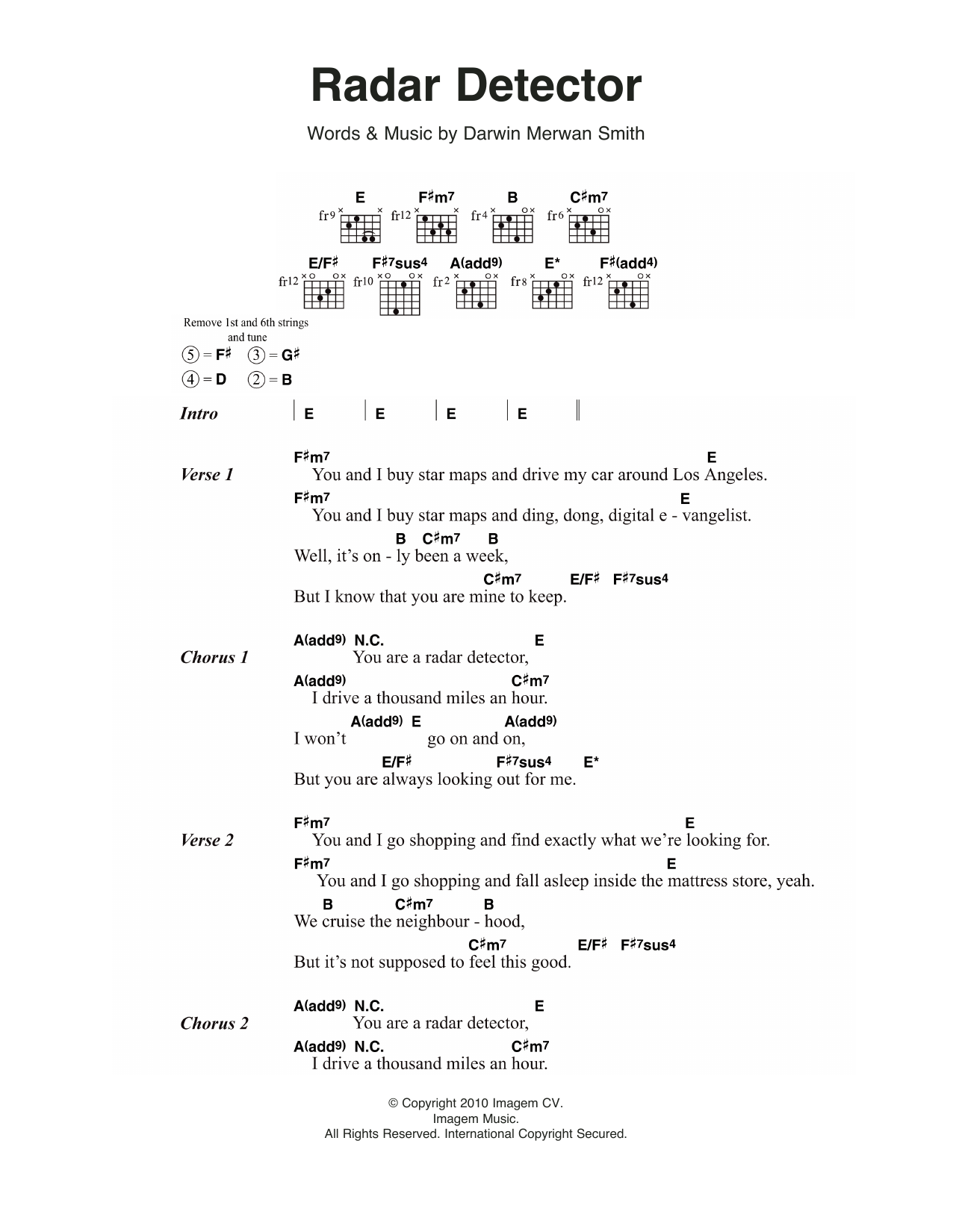Darwin Deez Radar Detector sheet music, chords, lyrics - Printable PDF for Lyrics & Chords