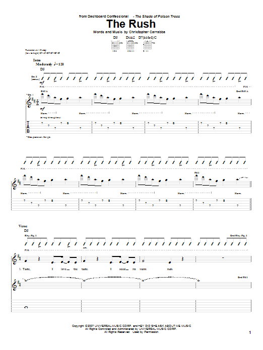 Dashboard Confessional The Rush sheet music, chords, lyrics - Printable PDF for Guitar Tab