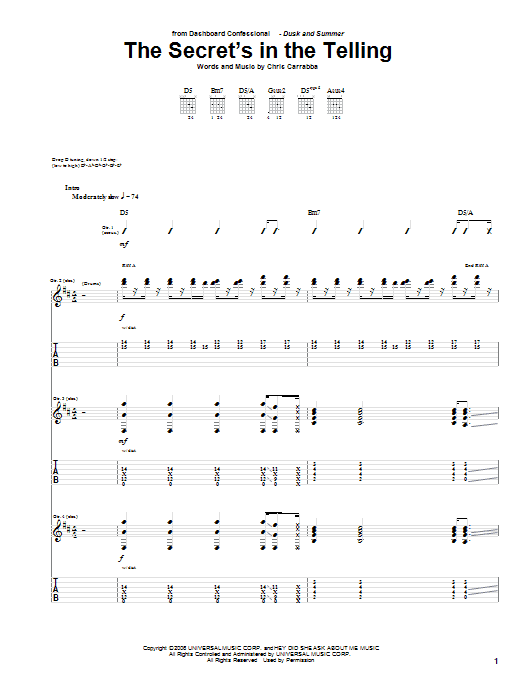 Dashboard Confessional The Secret's In The Telling sheet music, chords, lyrics - Printable PDF for Guitar Tab