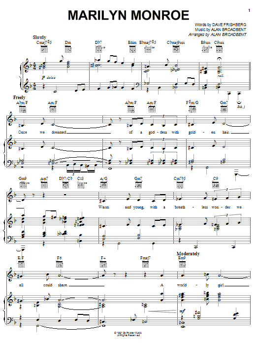 Dave Frishberg Marilyn Monroe sheet music, chords, lyrics - Printable PDF for Piano, Vocal & Guitar (Right-Hand Melody)