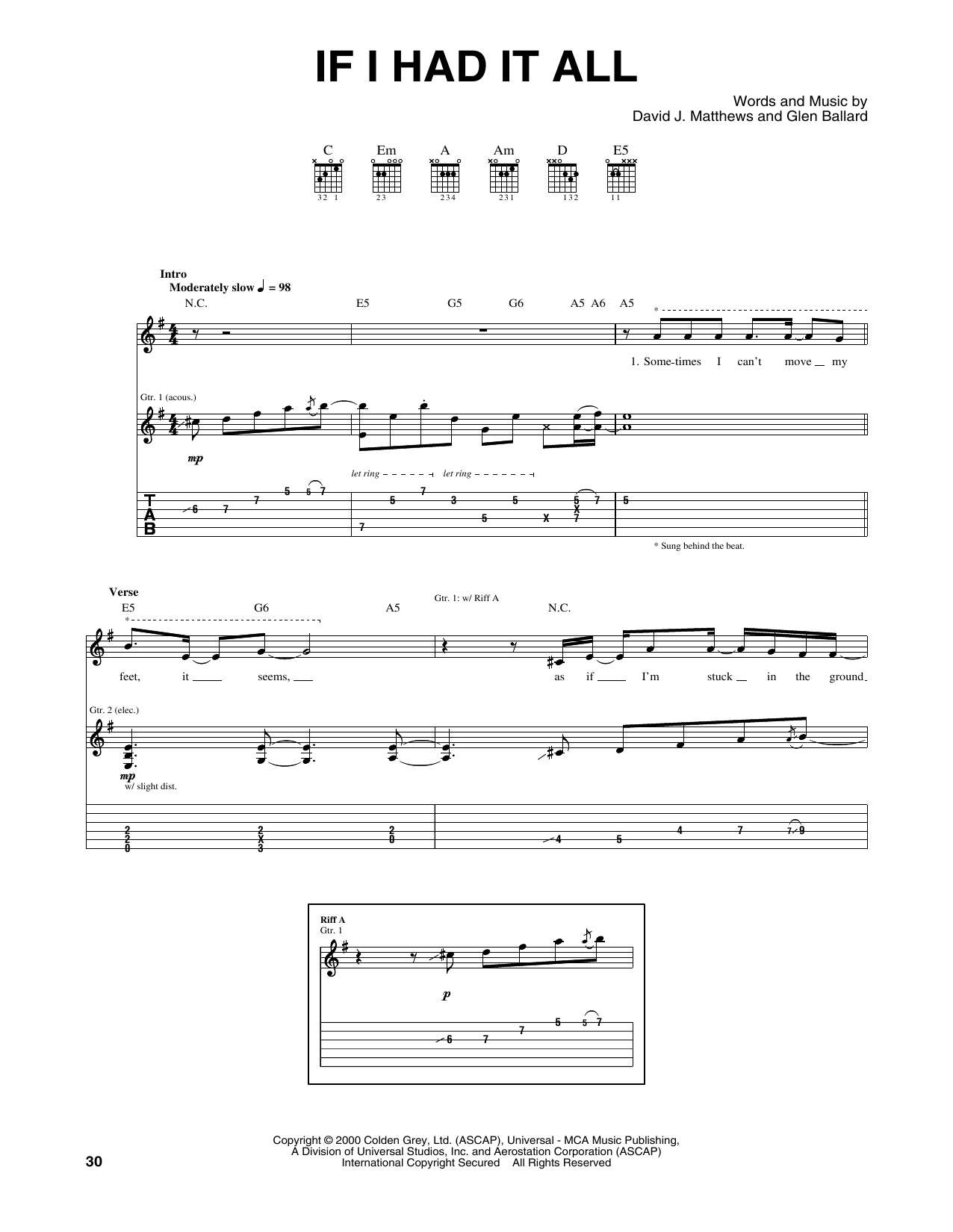 Dave Matthews Band If I Had It All sheet music, chords, lyrics - Printable PDF for Guitar Tab