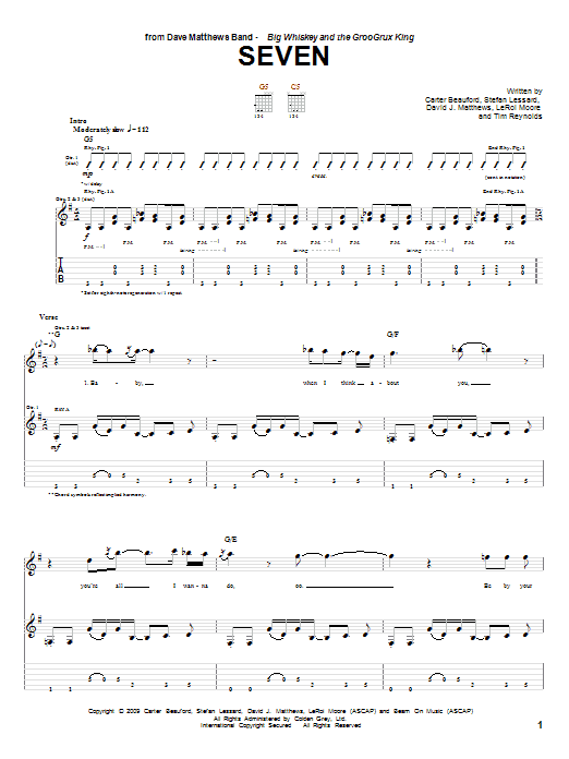 Dave Matthews Band Seven sheet music, chords, lyrics - Printable PDF for Guitar Tab