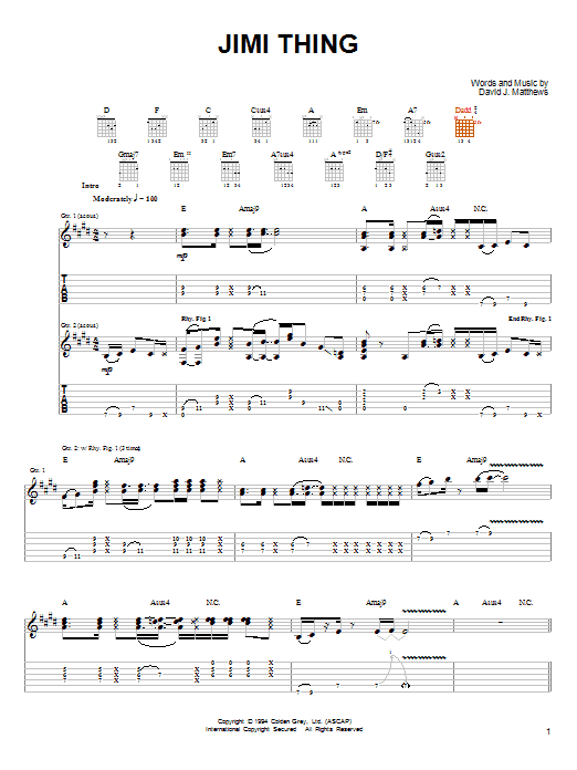 Download 23-Page Dave Matthews & Tim Reynolds Jimi Thing sheet music | Printable PDF Digital Notes