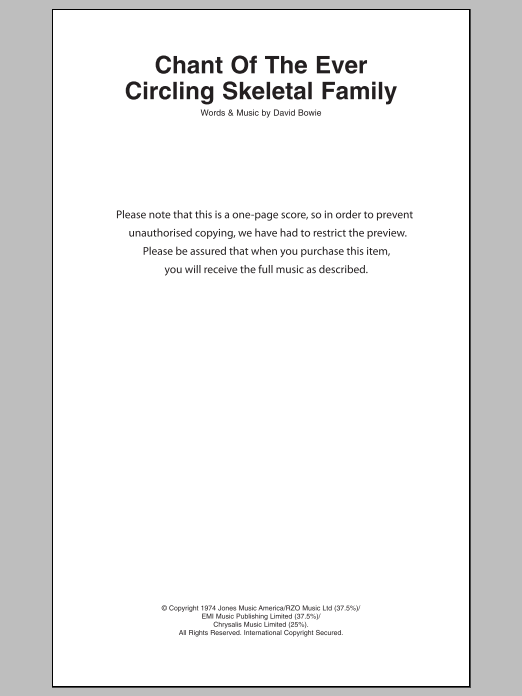Download 2-Page David Bowie Chant Of The Ever Circling Skeletal Family sheet music | Printable PDF Digital Notes