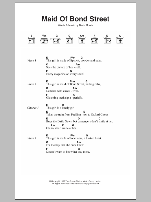 David Bowie Maid Of Bond Street sheet music, chords, lyrics - Printable PDF for Lyrics & Chords