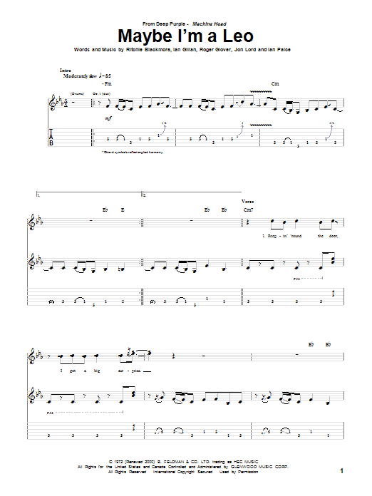 Deep Purple Maybe I'm A Leo sheet music, chords, lyrics - Printable PDF for Guitar Tab