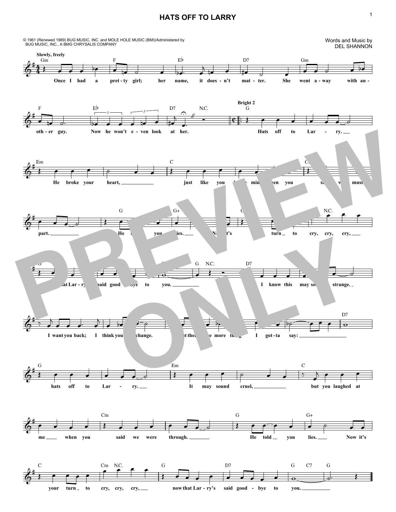 Download 1-Page Del Shannon Hats Off To Larry sheet music | Printable PDF Digital Notes