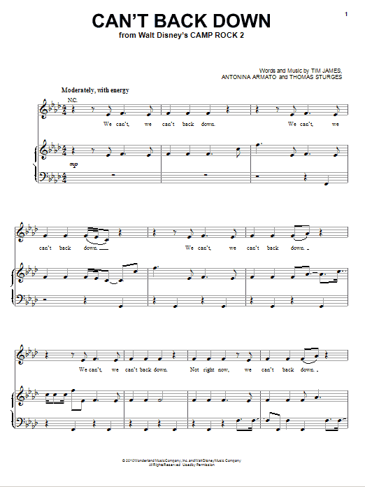 So, go ahead and download Can't Back Down (from Camp Rock 2) sheet music and start playing this wonderful score in bare minutes.
