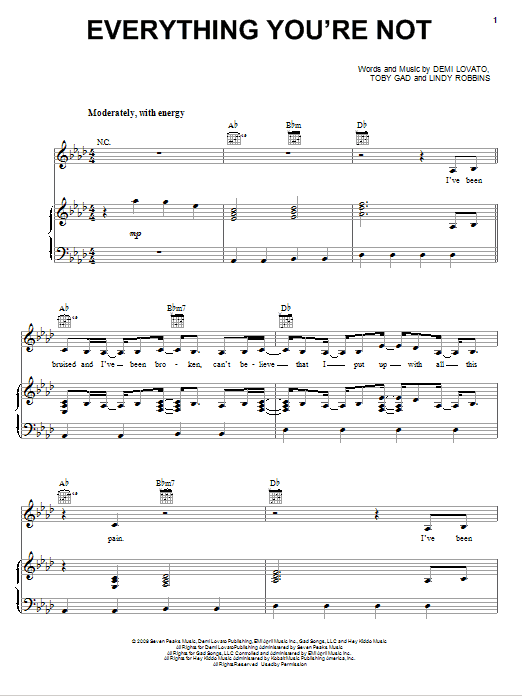 Download 9-Page Demi Lovato Everything You're Not sheet music | Printable PDF Digital Notes
