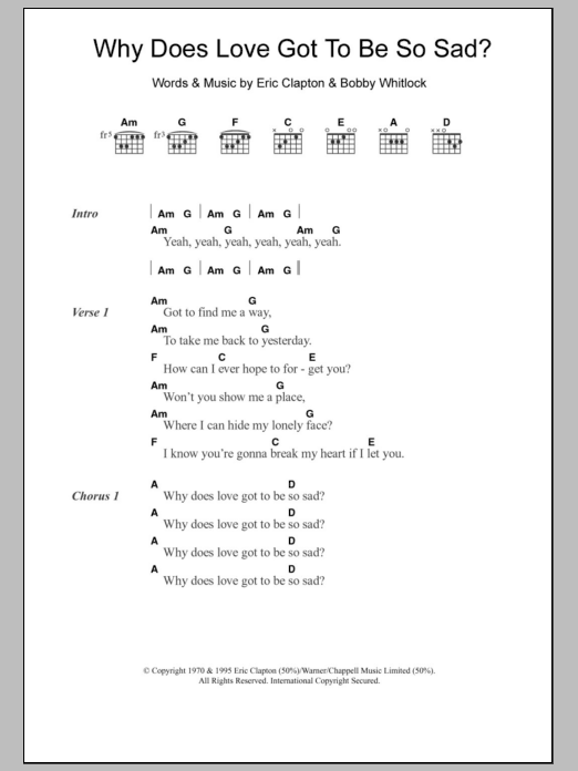 Derek And The Dominos Why Does Love Got To Be So Sad? sheet music, chords, lyrics - Printable PDF for Lyrics & Chords