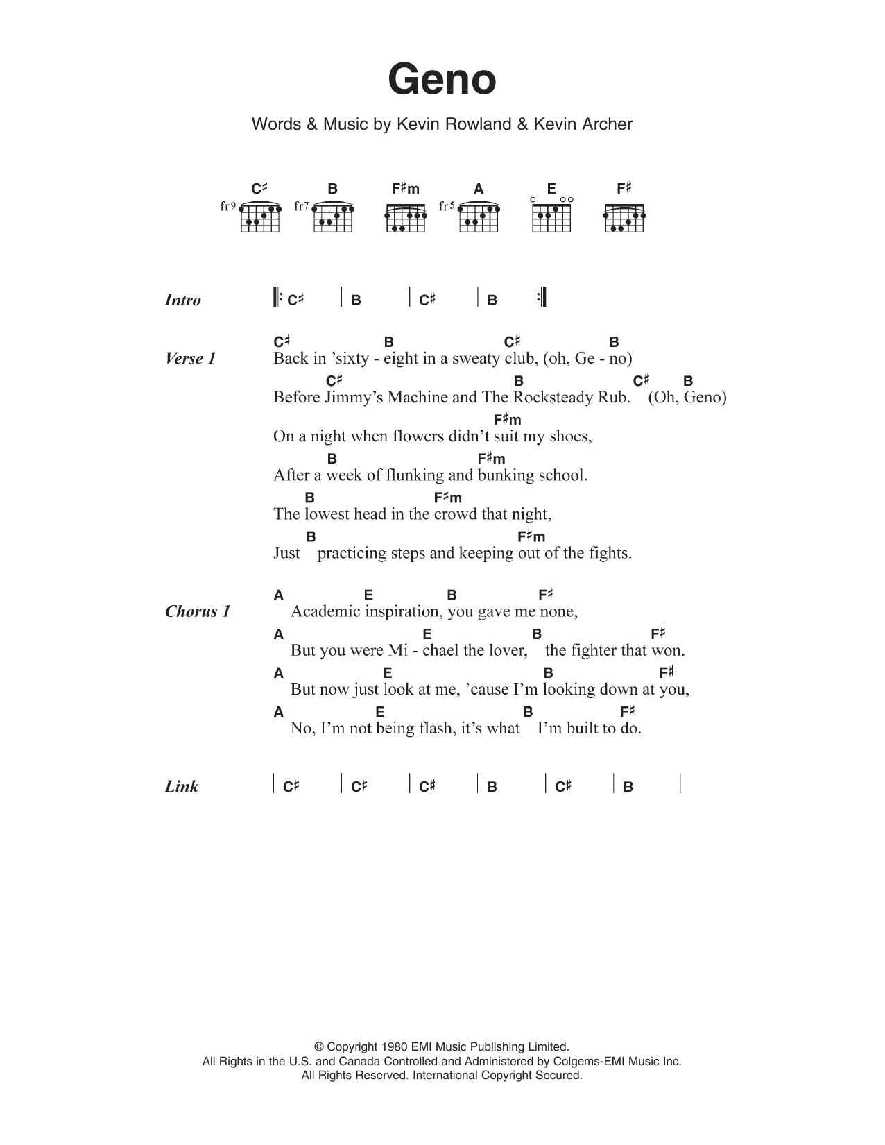 Dexy's Midnight Runners Geno sheet music, chords, lyrics - Printable PDF for Lyrics & Chords