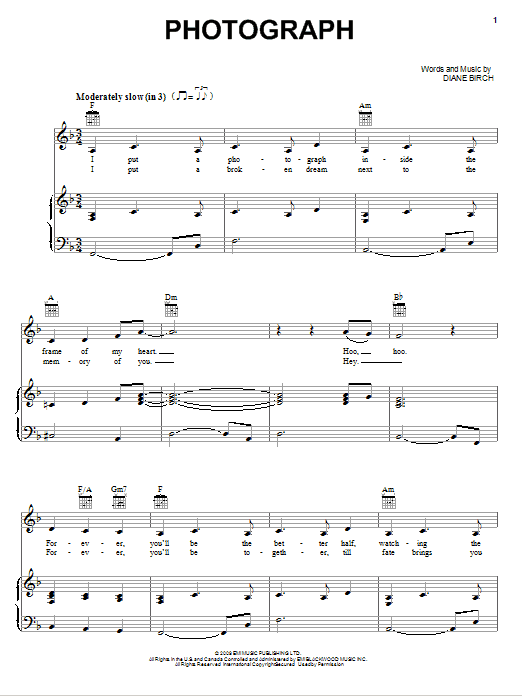 So, go ahead and download Photograph sheet music and start playing this wonderful score in bare minutes.