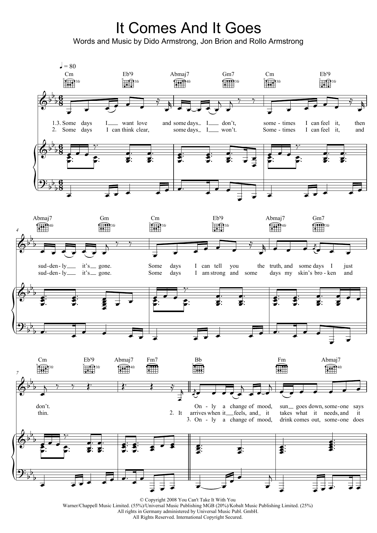Dido It Comes And It Goes sheet music, chords, lyrics - Printable PDF for Piano, Vocal & Guitar (Right-Hand Melody)